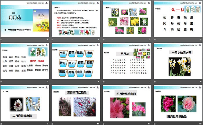 关键词:西师大版二年级上册语文PPT课件免费下载,月月花PPT下载,.PPT格式;
