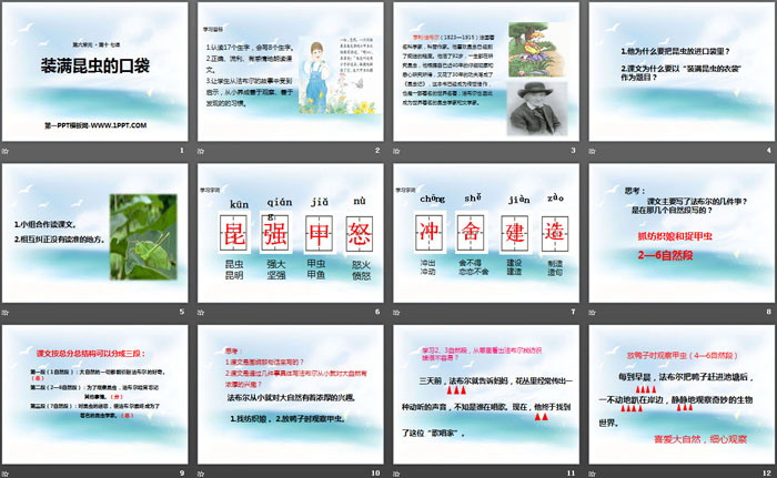 装满昆虫的口袋PPT,第三部分内容:总结课文