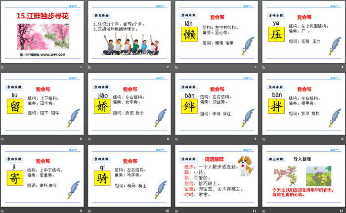 关键词:西师大版二年级下册语文PPT课件免费下载,江畔独步寻花PPT下载,.PPT格式;