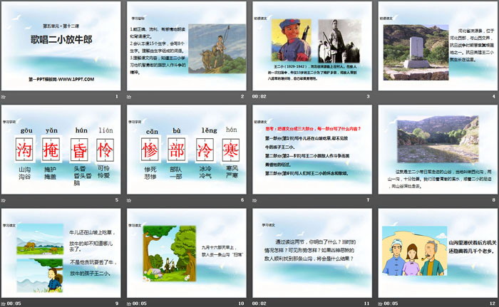 关键词:西师大版二年级下册语文PPT课件免费下载,歌唱二小放牛郎PPT下载,.PPT格式;