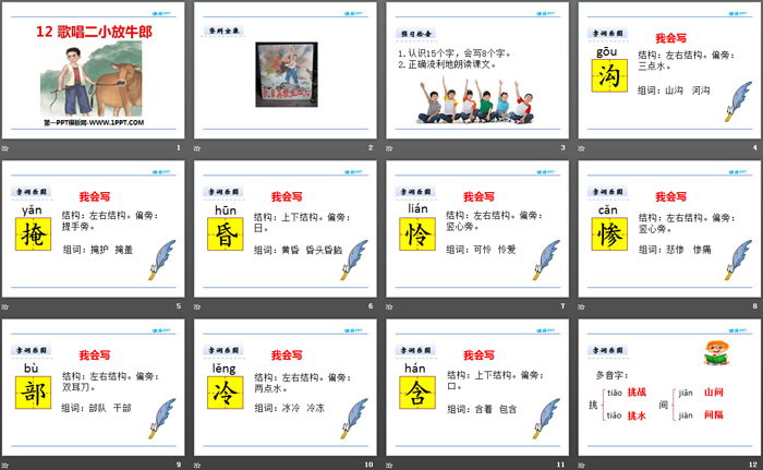 歌唱二小放牛郎PPT,第二部分内容:字词乐园