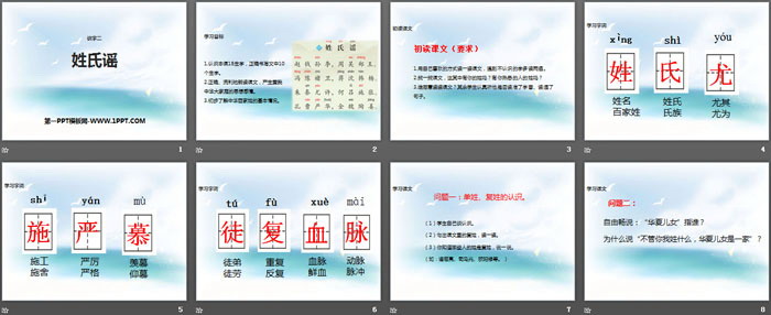 关键词:西师大版二年级下册语文PPT课件免费下载,姓氏谣PPT下载,.PPT格式;