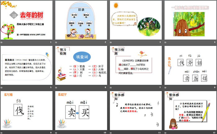 关键词:西师大版三年级上册语文PPT课件免费下载,去年的树PPT下载,.PPT格式;