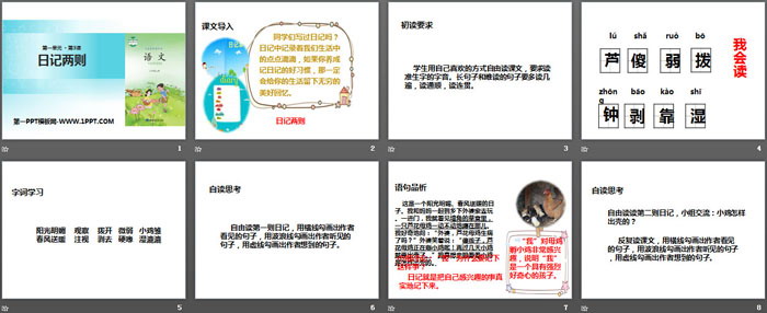 关键词:西师大版三年级上册语文PPT课件免费下载,日记两则PPT下载,.PPT格式;