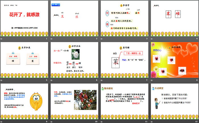 关键词:西师大版三年级下册语文PPT课件免费下载,花开了就感激PPT下载,.PPT格式;