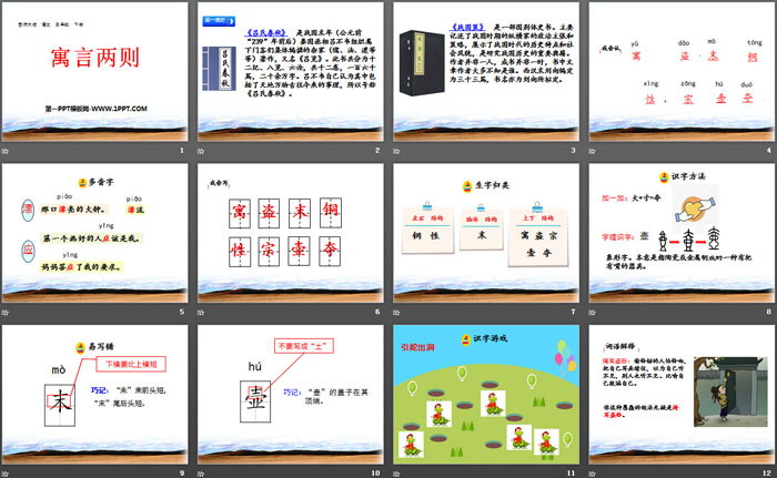 关键词:西师大版三年级下册语文PPT课件免费下载,寓言两则PPT下载,掩耳盗铃PPT下载,画蛇添足PPT下载,.PPT格式;