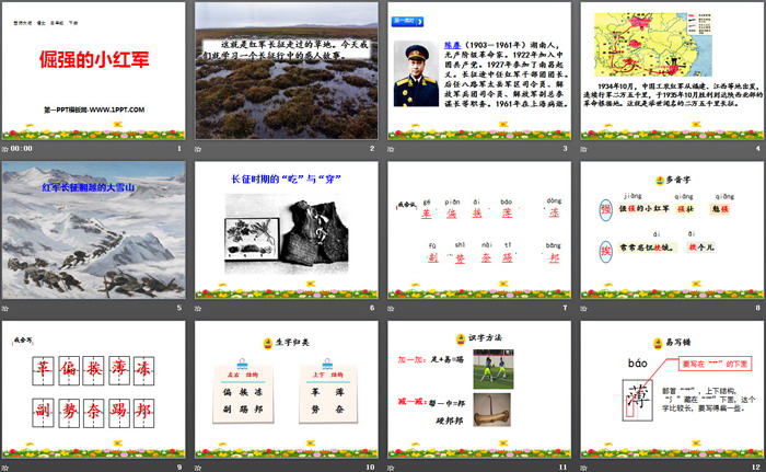 关键词:西师大版三年级下册语文PPT课件免费下载,倔强的小红军PPT下载,.PPT格式;