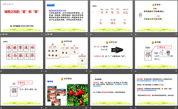 关键词:西师大版三年级下册语文PPT课件免费下载,植物之间的爱和恨PPT下载,.PPT格式;