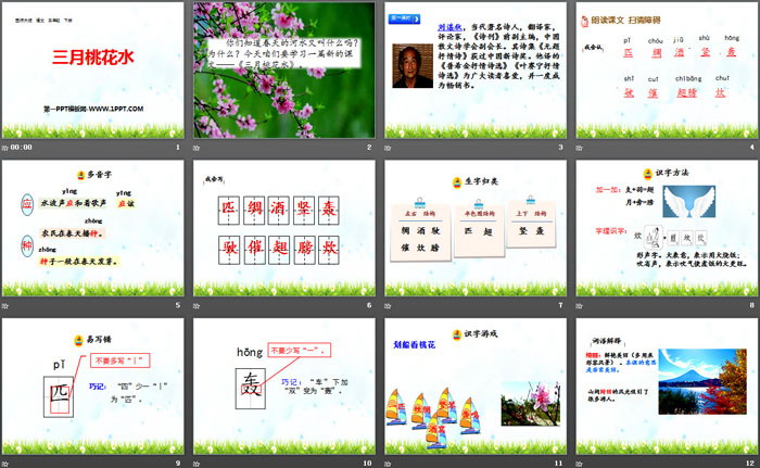 关键词:西师大版三年级下册语文PPT课件免费下载,三月桃花水PPT下载,.PPT格式;