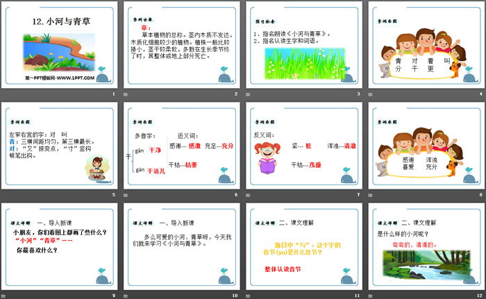 关键词:苏教版一年级上册语文PPT课件免费下载,小河与青草PPT下载,.PPT格式;