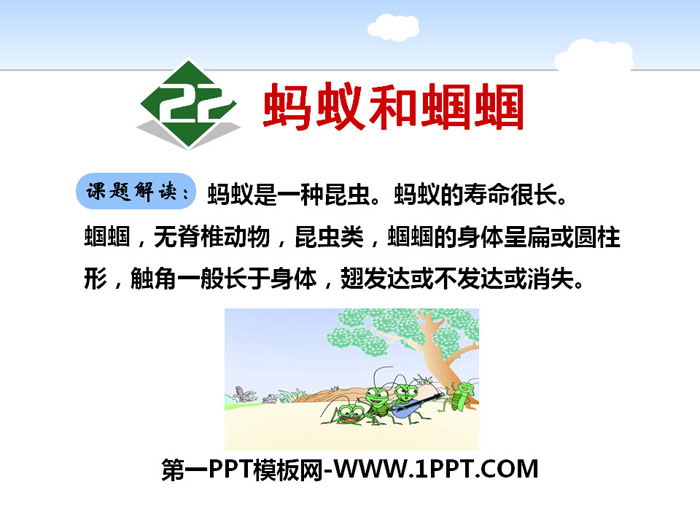 关键词:苏教版一年级下册语文PPT课件免费下载,蚂蚁和蝈蝈PPT下载,.PPT格式;