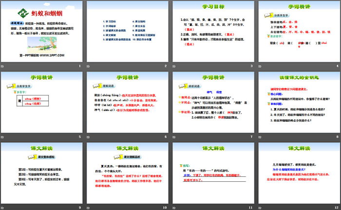 蚂蚁和蝈蝈PPT,第二部分内容:字词讲解