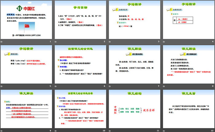 中国红PPT,第四部分内容:课文精讲