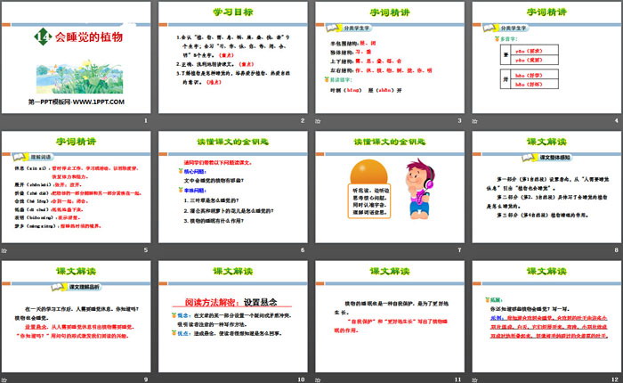 关键词:苏教版一年级下册语文PPT课件免费下载,会睡觉的植物PPT下载,.PPT格式;