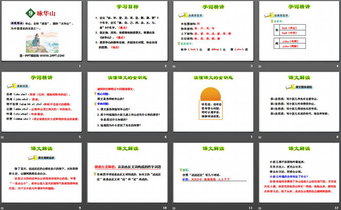 关键词:苏教版一年级下册语文PPT课件免费下载,咏华山PPT下载,.PPT格式;