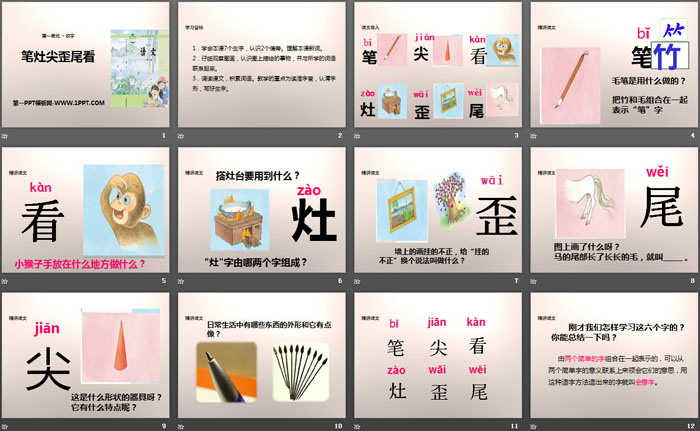 关键词:苏教版二年级上册语文PPT课件免费下载,笔灶尖歪尾看PPT下载,.PPT格式;