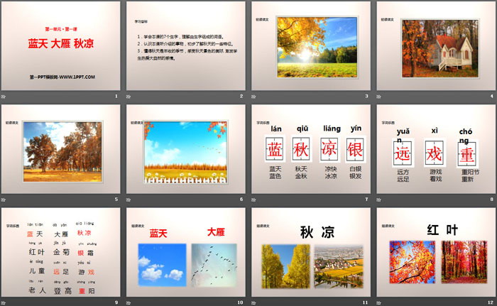 关键词:苏教版二年级上册语文PPT课件免费下载,蓝天大雁秋凉PPT下载,.PPT格式;