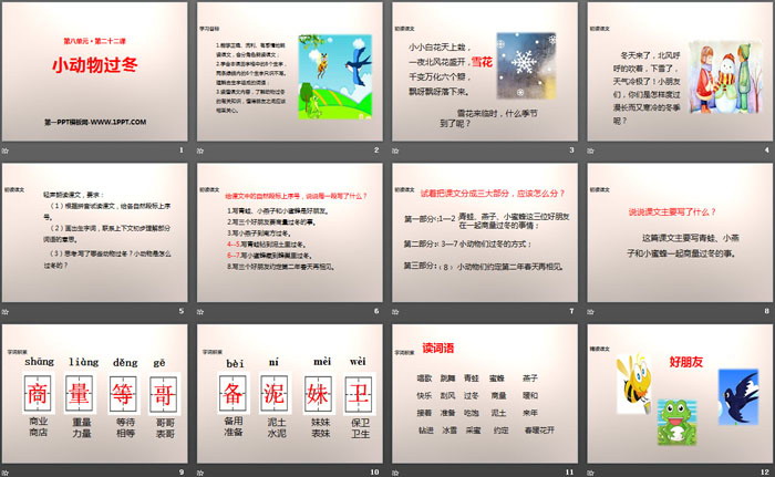 小动物过冬PPT,第五部分内容:总结课文