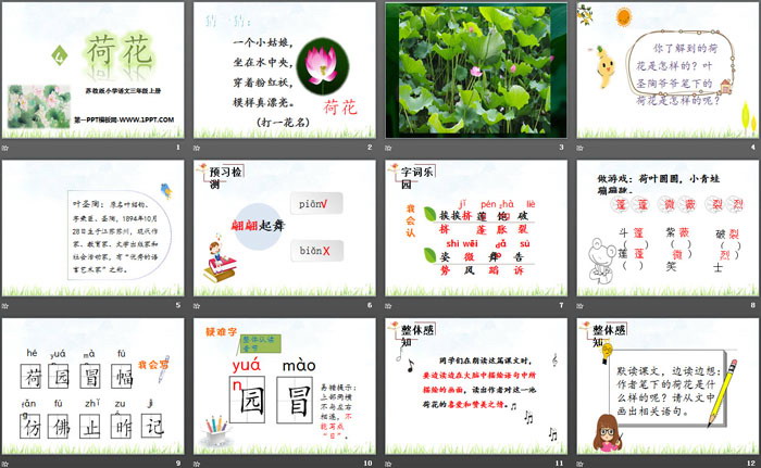 关键词:苏教版三年级上册语文PPT课件免费下载,荷花PPT下载,.PPT格式;