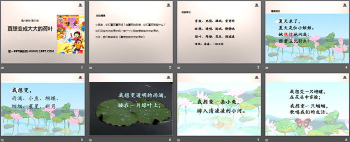 关键词:苏教版二年级下册语文PPT课件免费下载,真想变成大大的荷叶PPT下载,.PPT格式;