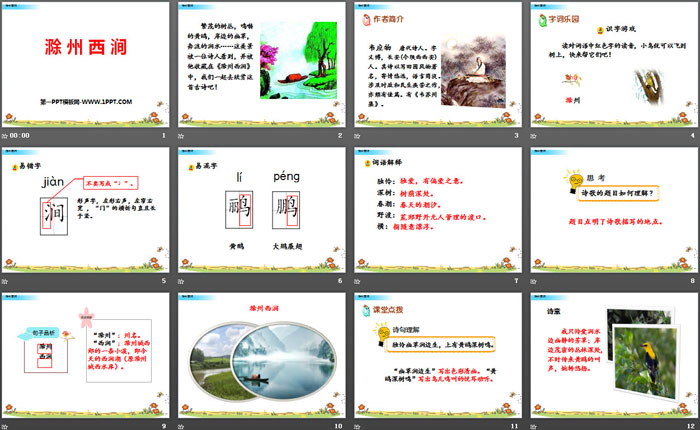 关键词:苏教版三年级下册语文PPT课件免费下载,滁州西涧PPT下载,.PPT格式;