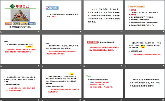 珍惜自己PPT,第五部分内容:课文主旨