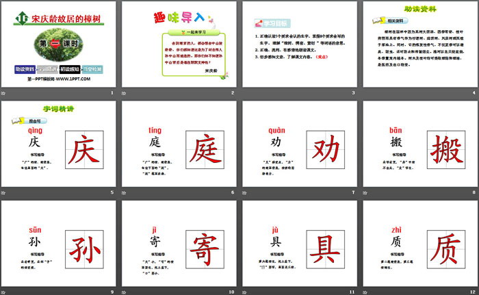 宋庆龄故居的樟树PPT,第二部分内容:字词精讲