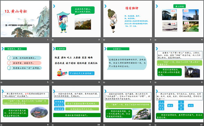 关键词:苏教版三年级下册语文PPT课件免费下载,黄山奇松PPT下载,.PPT格式;