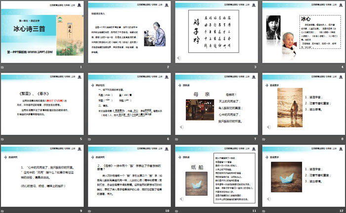 关键词:苏教版七年级上册语文PPT课件免费下载,冰心诗三首PPT下载,.PPT格式;
