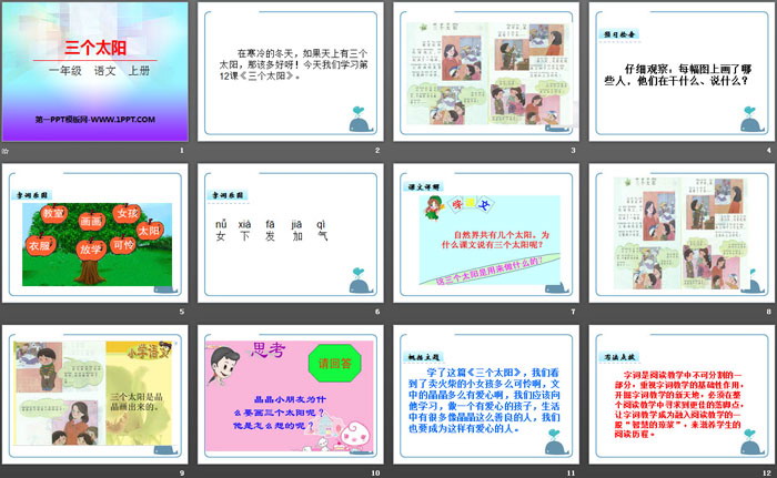 关键词:湘教版一年级上册语文PPT课件免费下载,三个太阳PPT下载,.PPT格式;