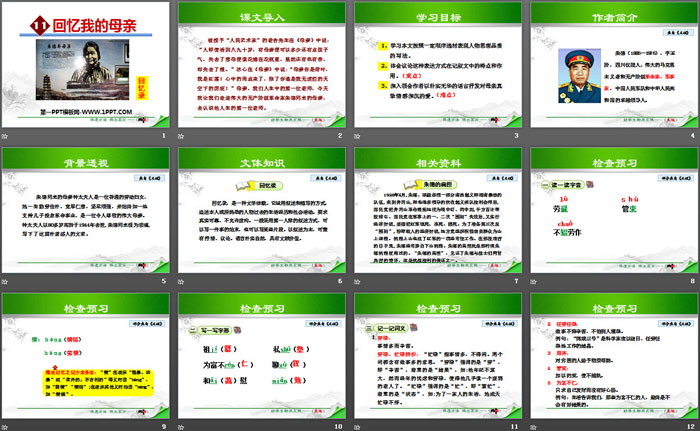 回忆我的母亲PPT,第五部分内容:检查预习