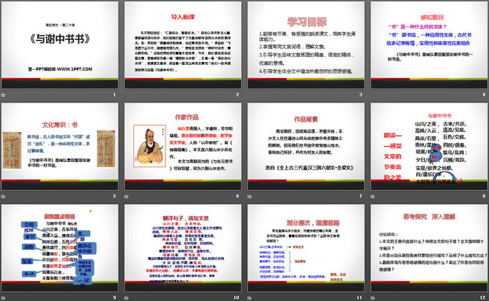 关键词:苏教版九年级上册语文PPT课件免费下载,与谢中书书PPT下载,.PPT格式;