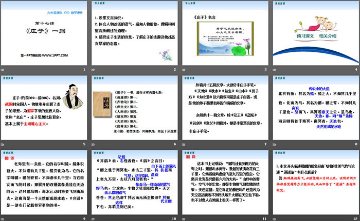 关键词:苏教版九年级上册语文PPT课件免费下载,庄子一则PPT下载,.PPT格式;