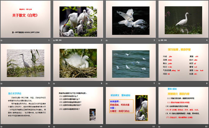 关键词:苏教版九年级上册语文PPT课件免费下载,关于散文白鹭PPT下载,.PPT格式;