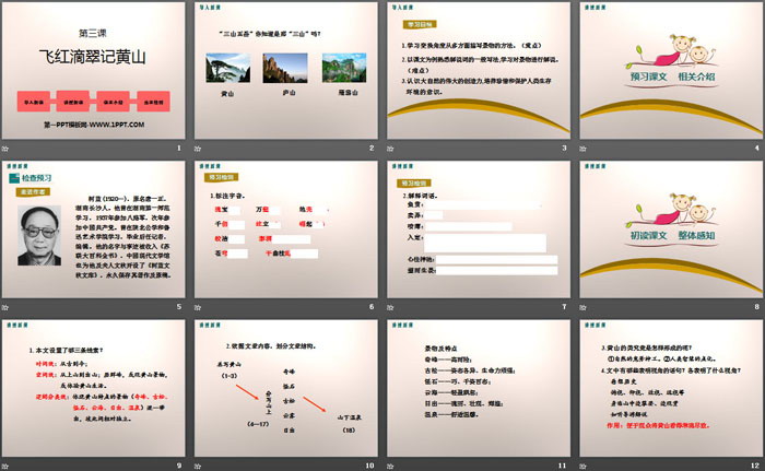 飞红滴翠记黄山PPT,第二部分内容:预习课文 相关介绍