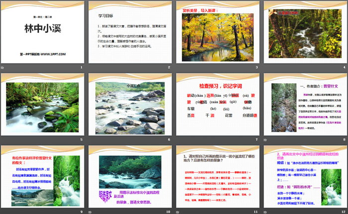 关键词:苏教版九年级上册语文PPT课件免费下载,林中小溪PPT下载,.PPT格式;