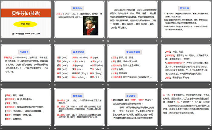关键词:苏教版九年级下册语文PPT课件免费下载,贝多芬传PPT下载,.PPT格式;