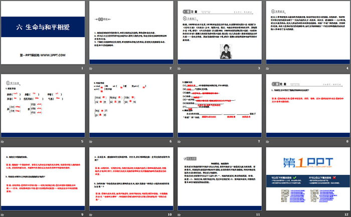 关键词:苏教版九年级下册语文PPT课件免费下载,生命与和平相爱PPT下载,.PPT格式;