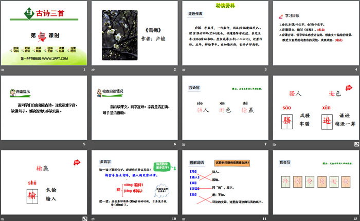 2.背诵课文,默写《雪梅》。(重点)