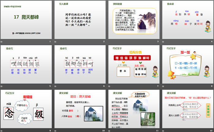 关键词:部编人教版四年级上册语文PPT课件免费下载,爬天都峰PPT下载,.PPT格式;