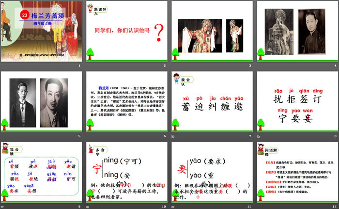 关键词:部编人教版四年级上册语文PPT课件免费下载,梅兰芳蓄须PPT下载,.PPT格式;