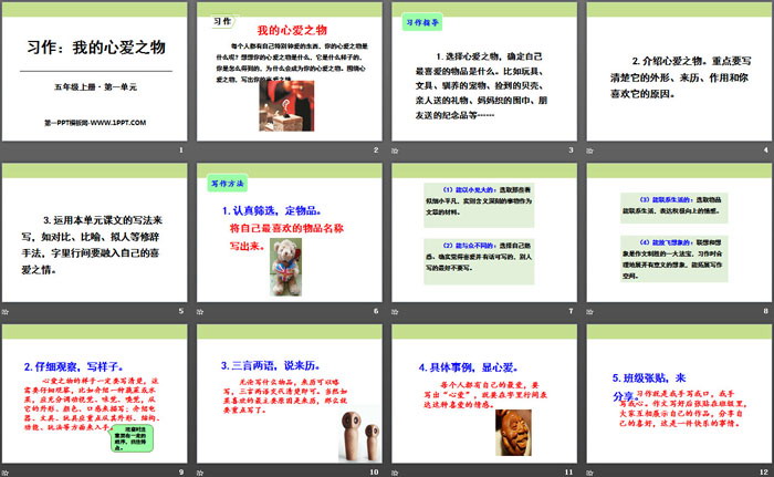 关键词:部编人教版五年级上册语文PPT课件免费下载,我的心爱之物PPT下载,.PPT格式;