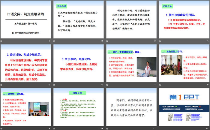 关键词:部编人教版五年级上册语文PPT课件免费下载,制定班级公约PPT下载,.PPT格式;