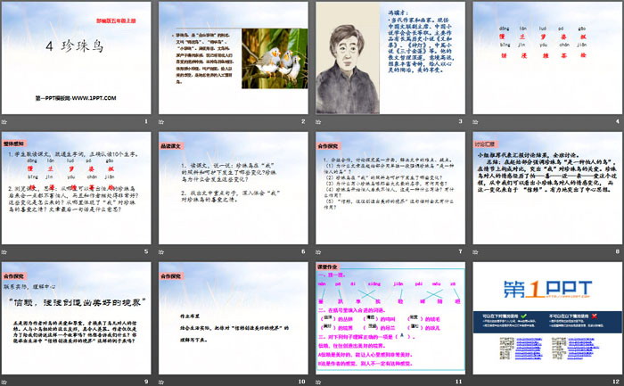 关键词:部编人教版五年级上册语文PPT课件免费下载,珍珠鸟PPT下载,.PPT格式;