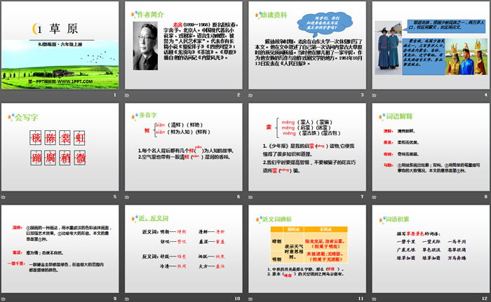 关键词:部编人教版六年级上册语文PPT课件免费下载,草原PPT下载,.PPT格式;