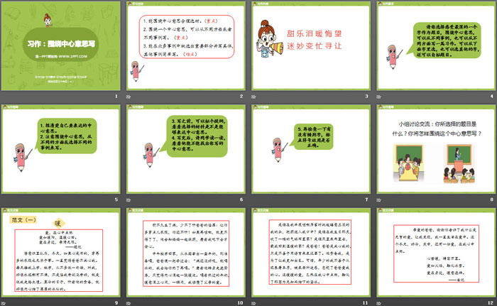 关键词:部编人教版六年级上册语文PPT课件免费下载,围绕中心意思写PPT下载,.PPT格式;