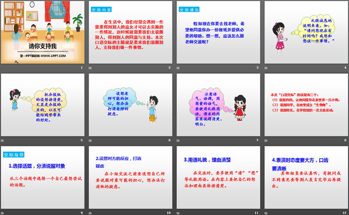 在生活中,我们经常会遇到一些需要得到别人的应允才可以去实施的一些情况,这时候就需要我们去说服别人,得到别人的同意与支持。本次口语交际的主题就是要求我们说服别人,支持我们做一件事情。