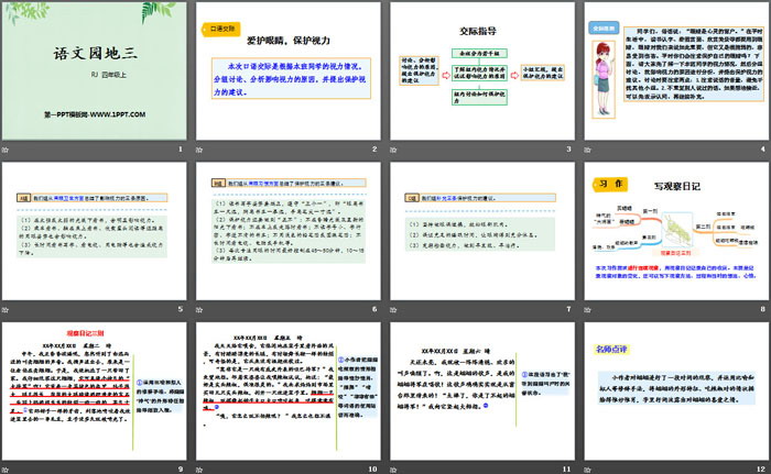本次口语交际是根据本班同学的视力情况,分组讨论、分析影响视力的原因,并提出保护视力的建议。