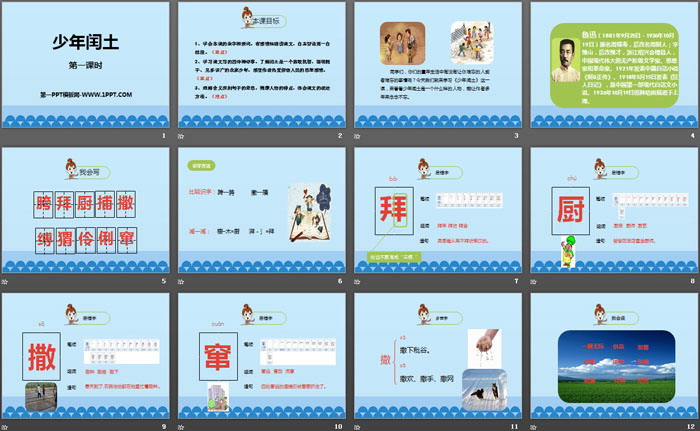 关键词:部编人教版六年级上册语文PPT课件免费下载,少年闰土PPT下载,.PPT格式;