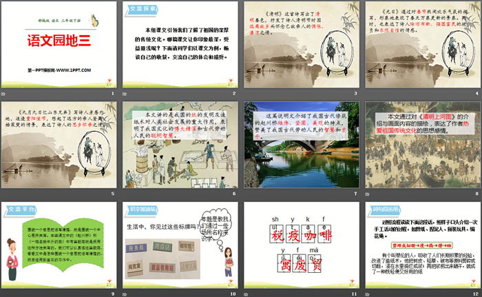 关键词:部编人教版三年级下册语文PPT课件免费下载,语文园地PPT下载,.PPT格式;